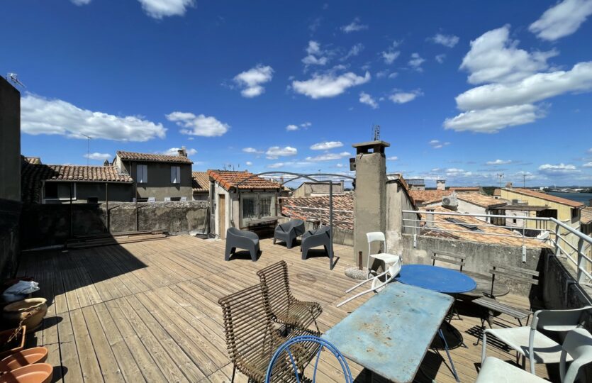 Magnifique appartement dans le centre historique de la ville d’Arles. Situé entre les arènes, le théâtre antique et la place du forum, dans le quartier très prisé de l’hauture, rue Lucien Clergue, il est composé de deux chambres d’un grand séjour/cuisine, avec une belle hauteur sous plafond. Traversant Est/ouest, il bénéficie d’une magnifique lumière toute la journée. Dans ce quartier très calme, sans aucune nuisance, il dispose aussi, d’une terrasse spectaculaire de 55 m2, véritable lieu de vie supplémentaire, avec une vue à 360° sur les arènes, le Rhône, les Alpilles et les toits de la ville.