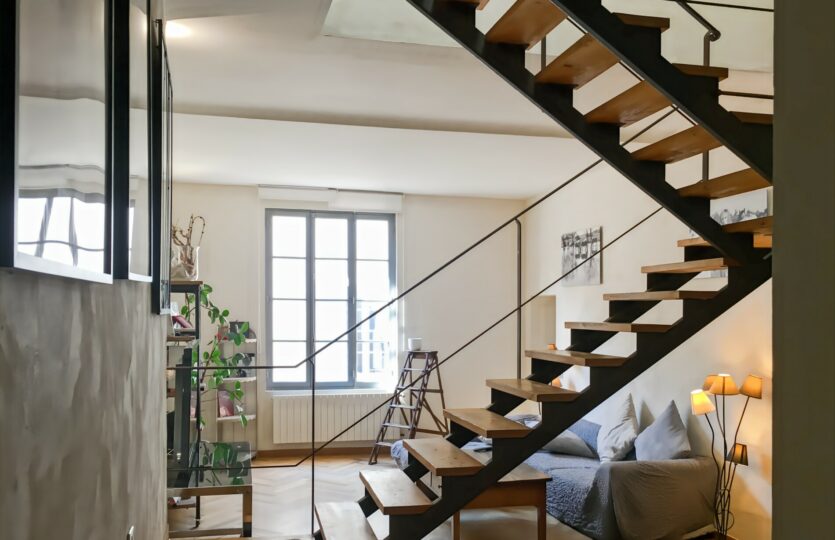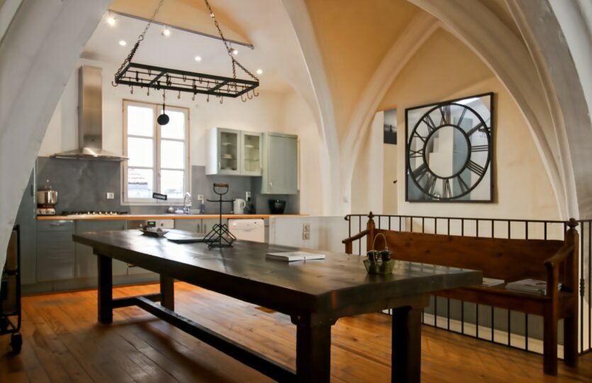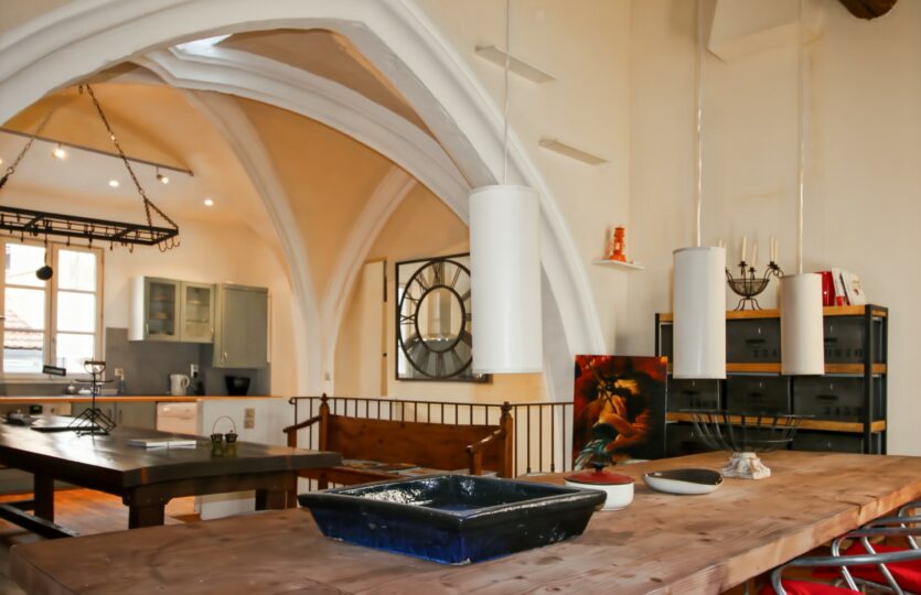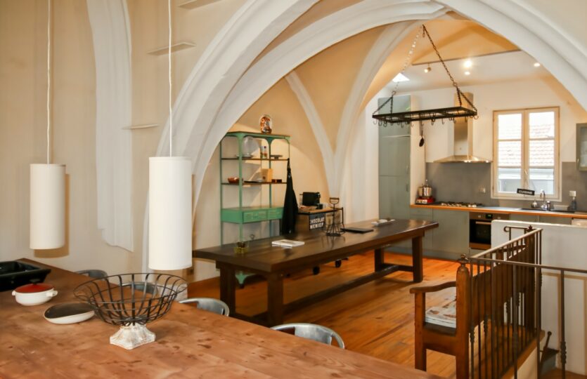 4 chambres mais surtout deux grandes pièces à vivre sous les arches de l’église des carmes, chacune mesurant 37 et 32 m2 loi Carrez.