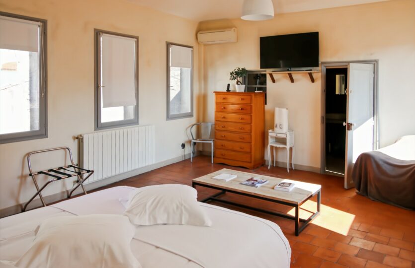 Magnifique duplex Arles sur deux étages sans rdc, située à 50 m de la place de la mairie d’Arles. Au sein d’une rue piétonne très calme, cette maison bénéficie d’une belle lumière grâce à son orientation est/Ouest.