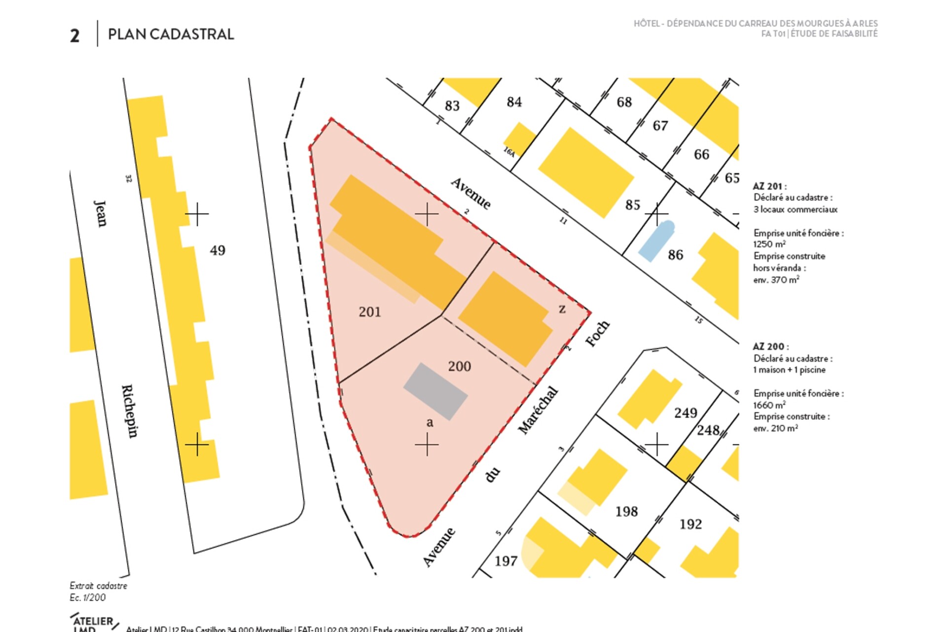 Possibilité de réaliser un ensemble immobilier, appartements, maisons commerces. Cet ensemble immobilier, aujourd’hui à l’abandon est situé dans le quartier très prisé des Alyscamps à Arles