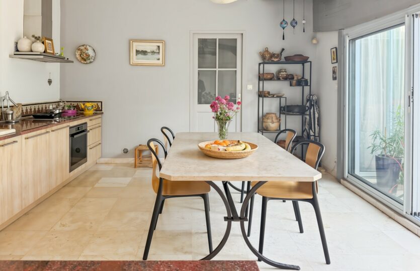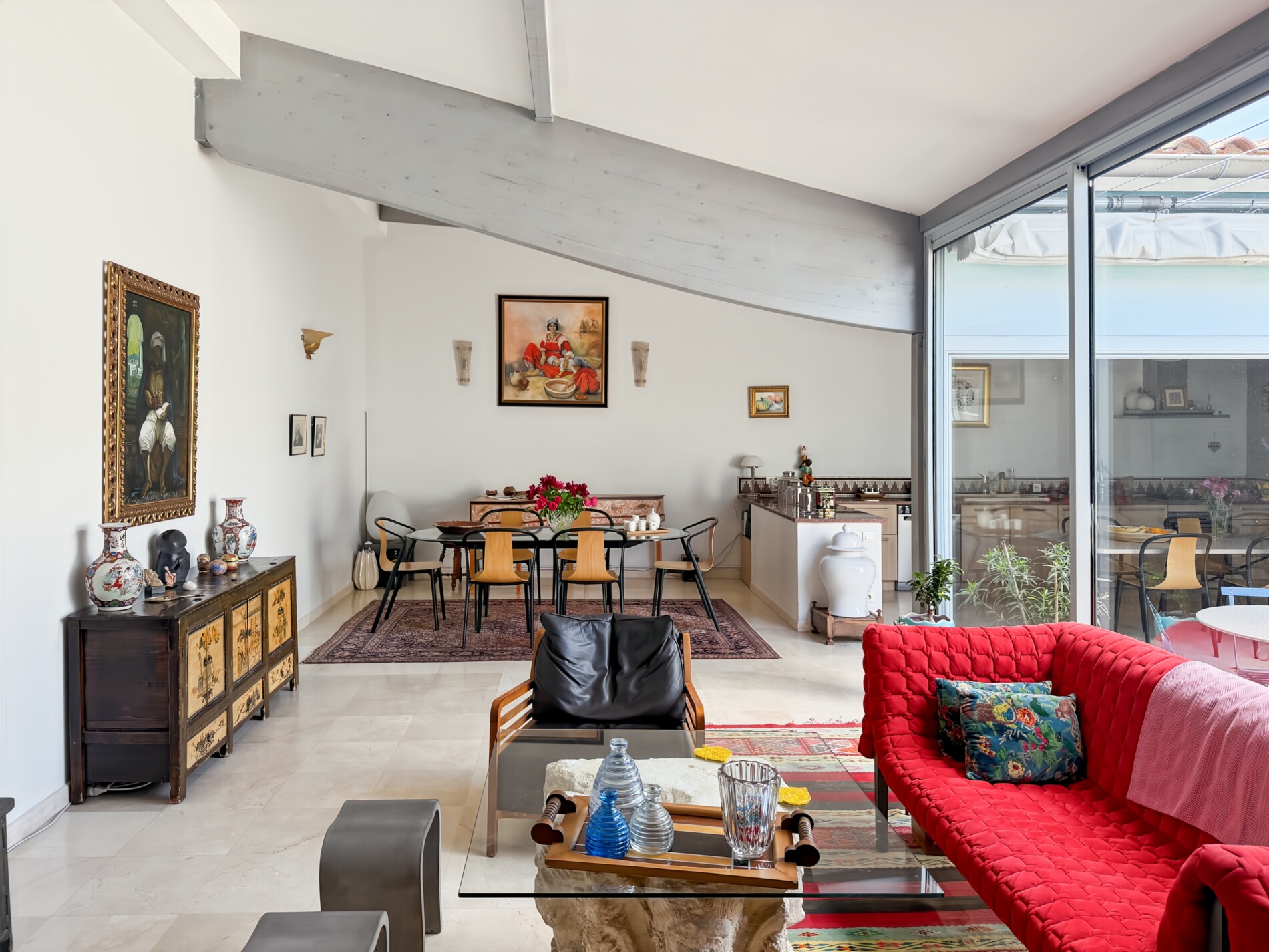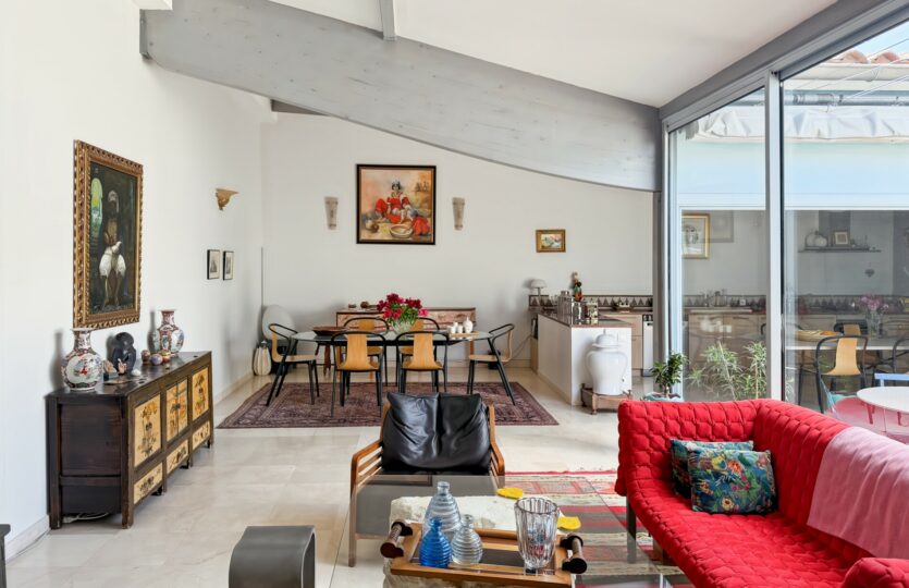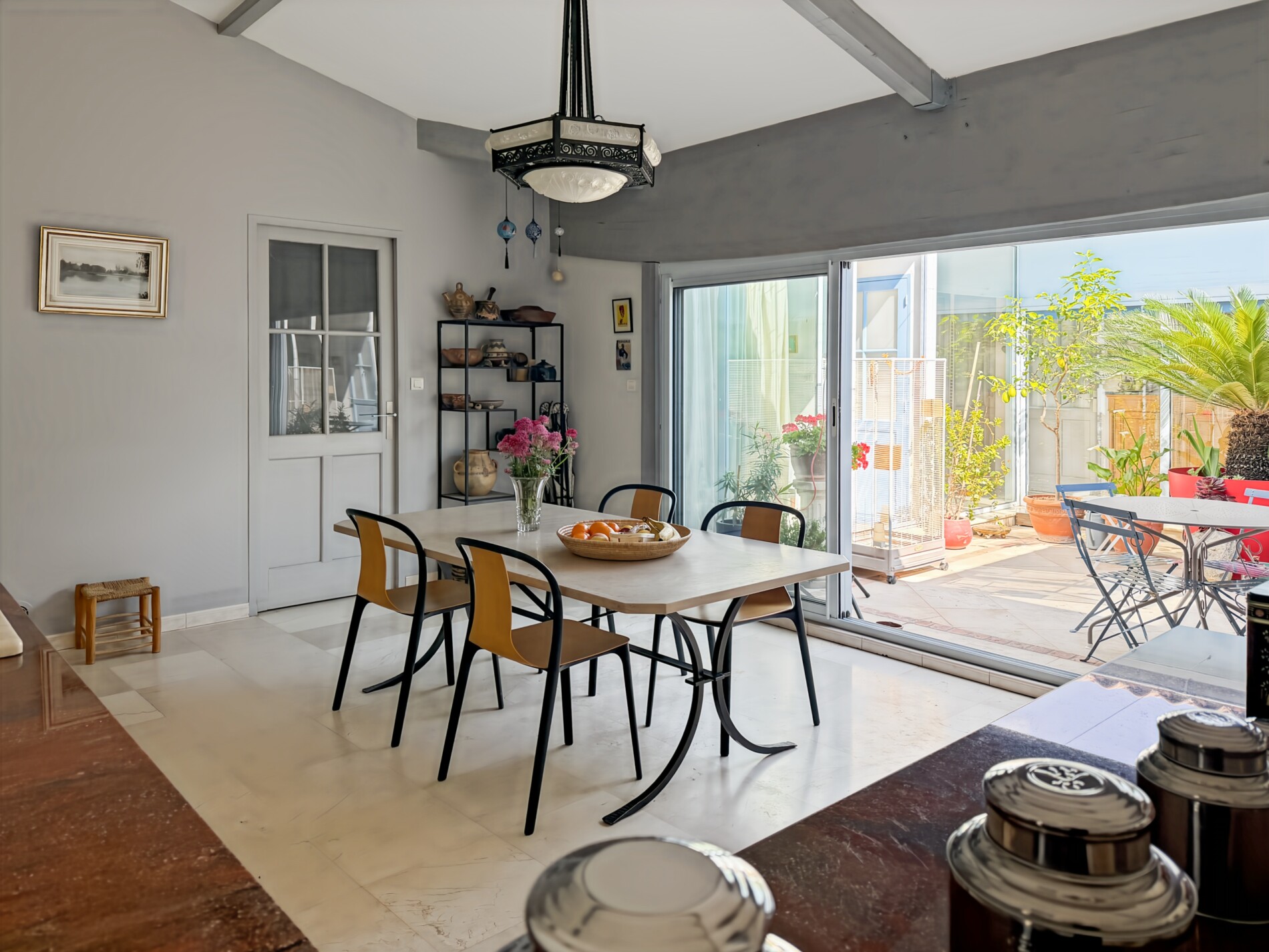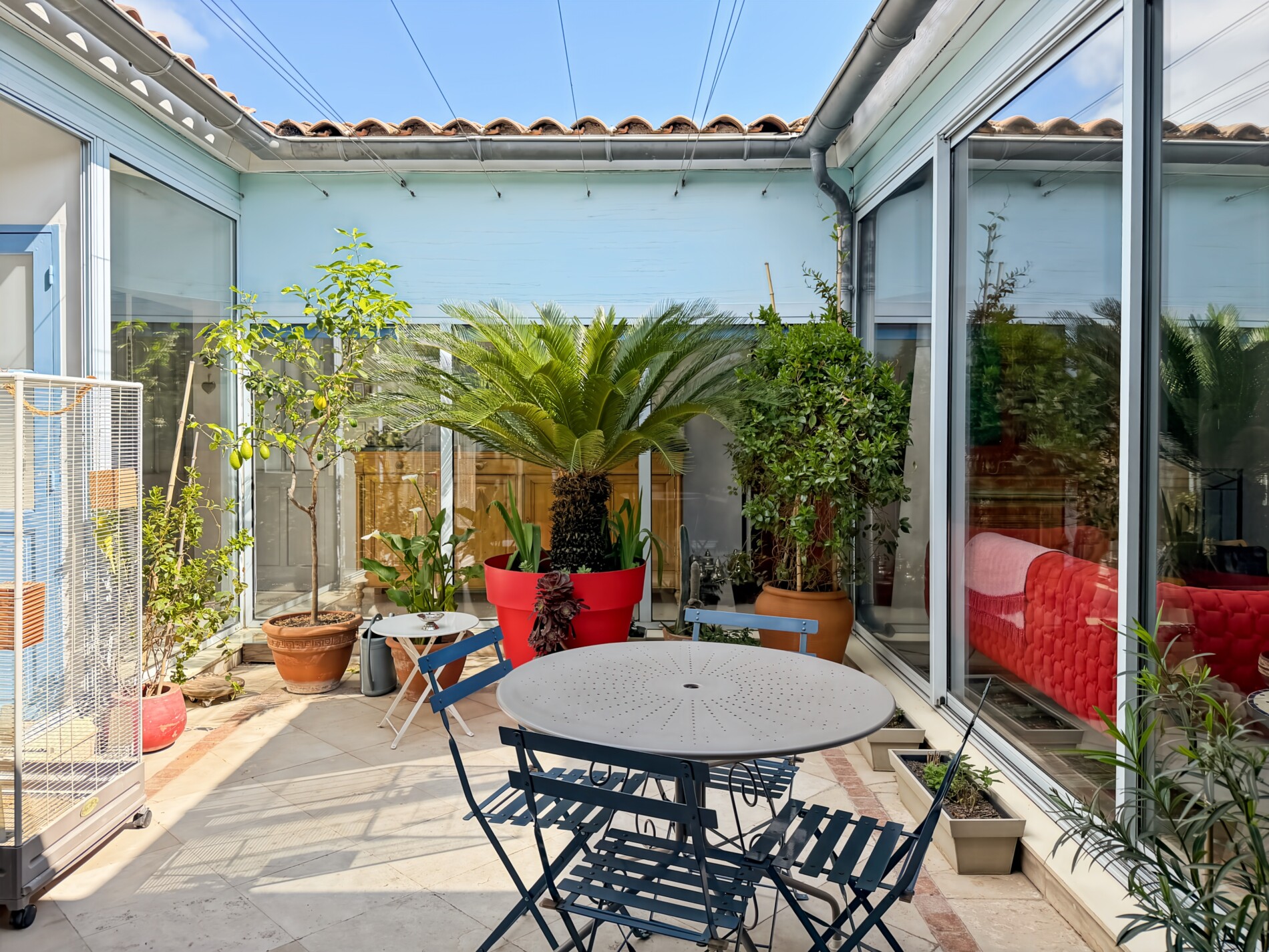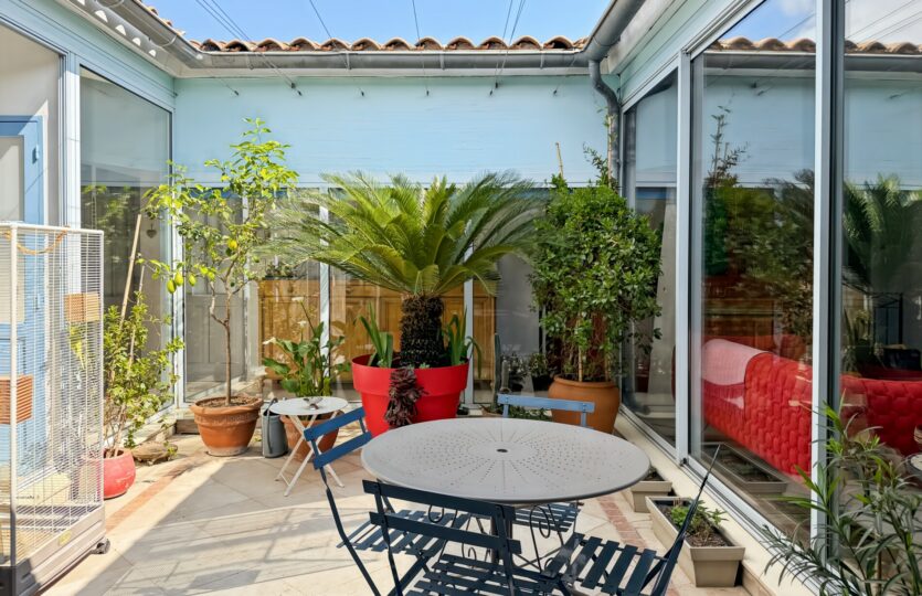 Maison avec patio Arles Située entre la croisière et la fondation LUMA, cette maison récente, a la particularité d’avoir un patio central, qui donne de la lumière naturelle à toutes les pièces.