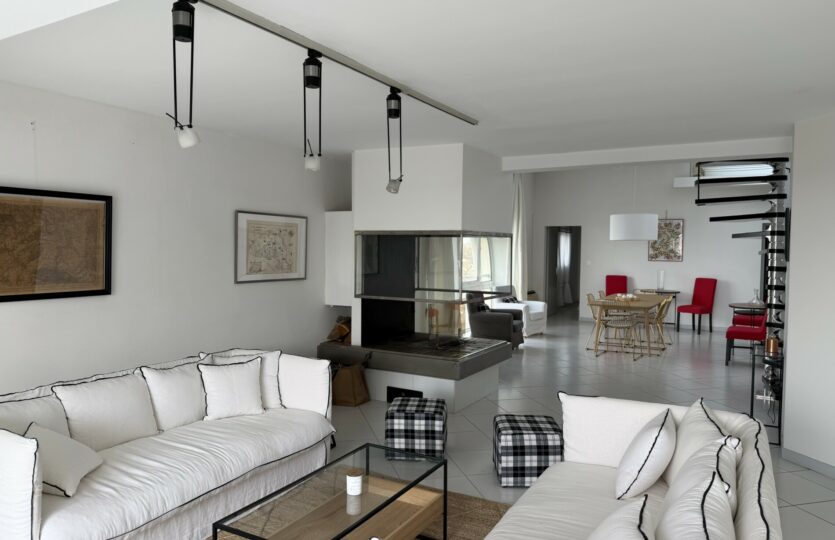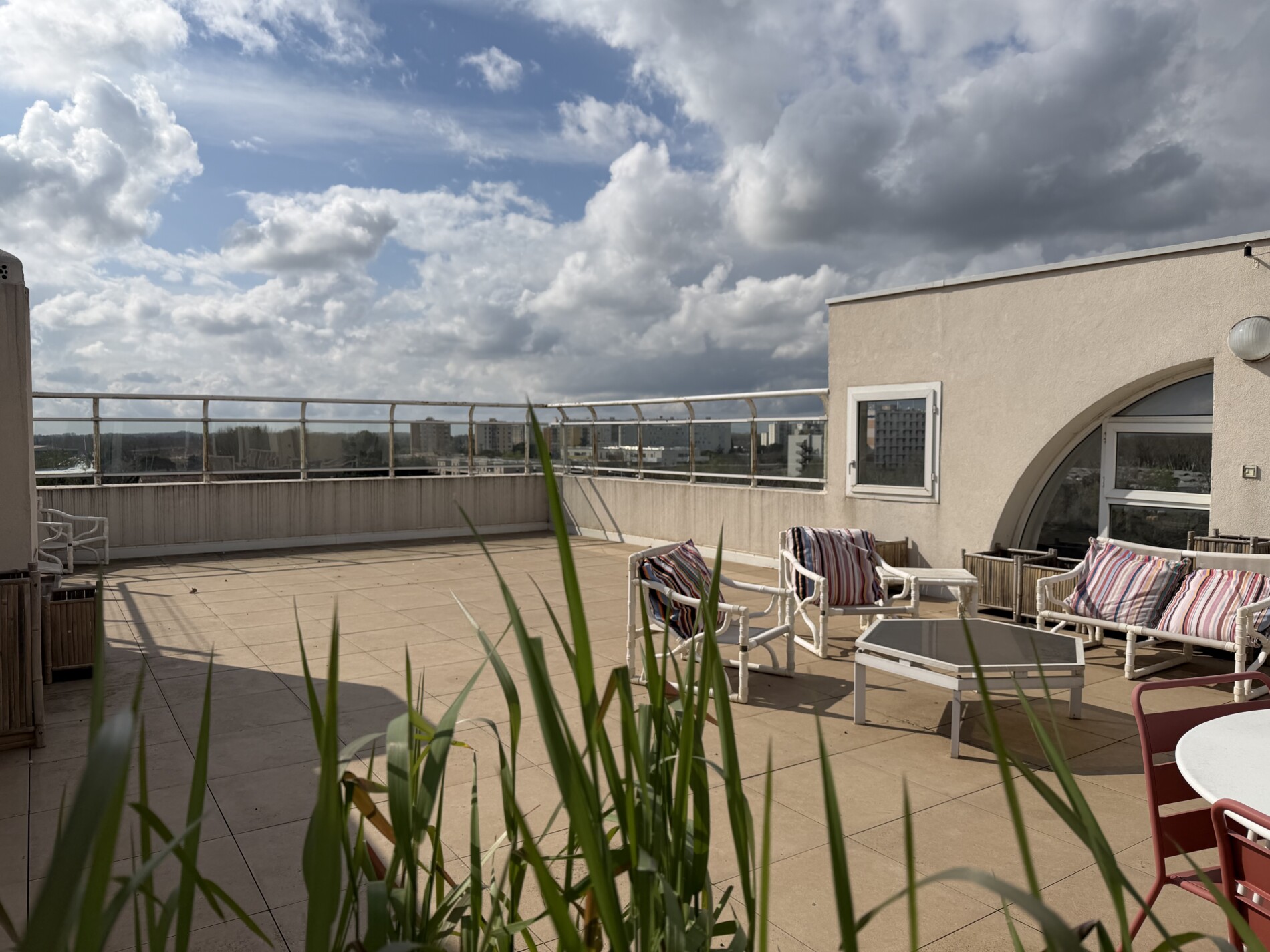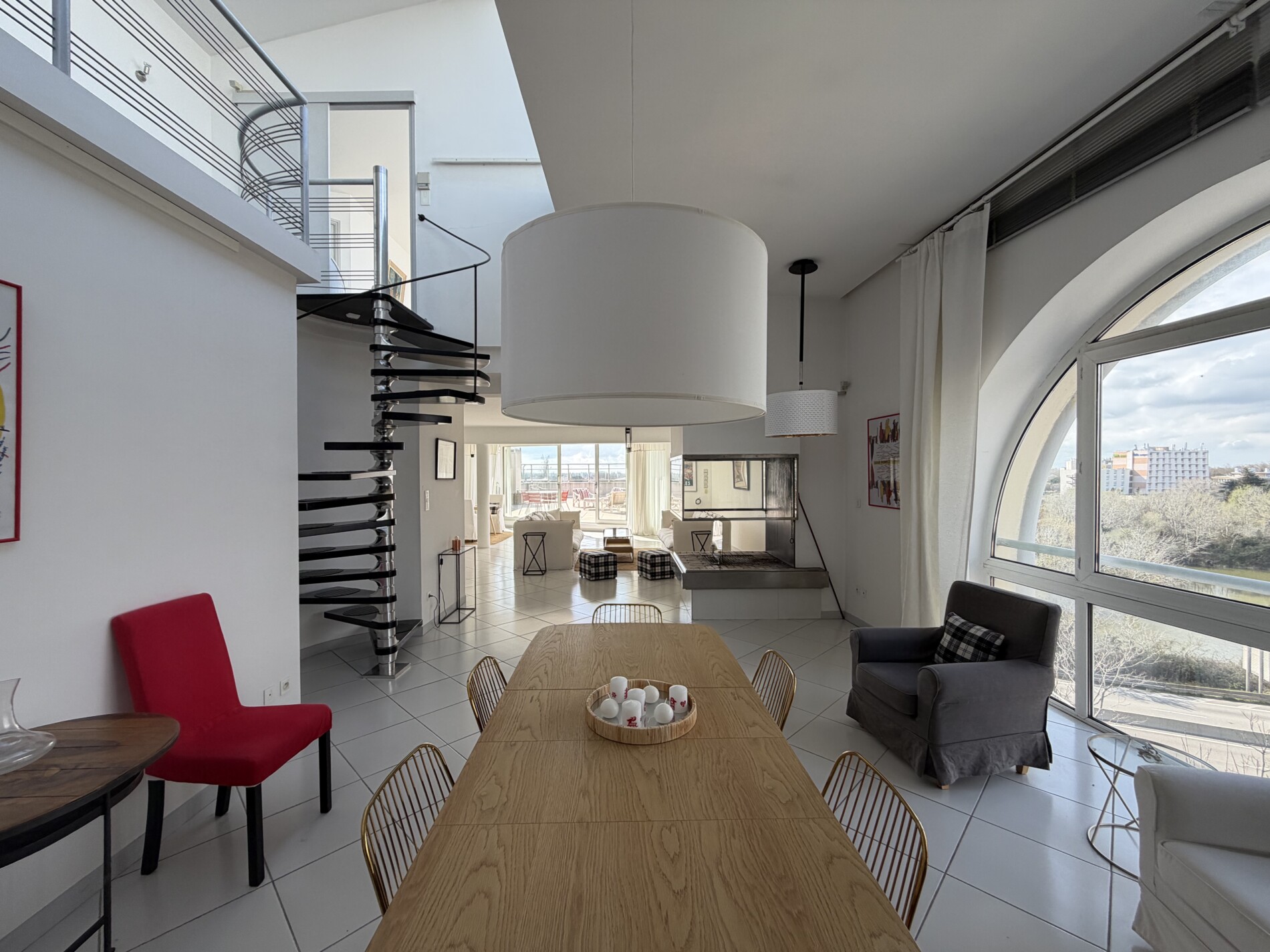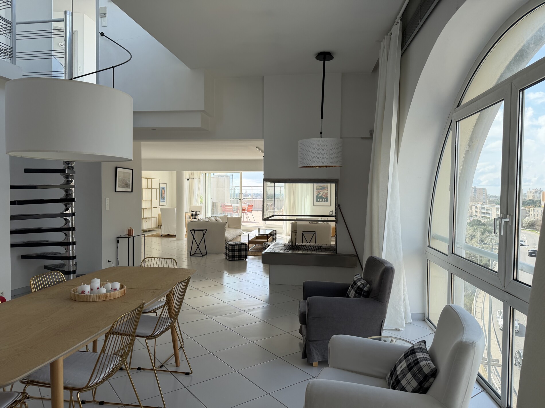 Un duplex dans les nuages ! Incroyable appartement de plus de 200 m2 habitables avec 250 m2 de terrasse. Situé au dernier étage de l’immeuble « le réginel », cet appartement avec un toit terrasse spectaculaire domine toute la ville d’Arles, avec au loin une vue sur les Alpilles, les Cévennes et les toits de la ville. L’ascenseur privatif, arrivant directement dans le salon de 80 m2 est le début des attraits de ce bien. Une cave à vin climatisée, un escalier hélicoïdal signé Roger Tallon, des baies vitrées protégées par des volets électriques, trois chambres dont une suite, une véranda chauffée, le tout climatisé, et avec la possibilité d’avoir un jacuzzi sur la terrasse, réalisé par les architectes JY Roudière et P. Pétrini.